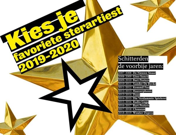 Elk jaar kiest het publiek van De Werf zijn favoriete voorstelling. Ook al hebben we dit seizoen vroeger dan gewoonlijk moeten afronden, een sterartiest mag niet ontbreken. Steek je favoriete artiest van dit seizoen een hart onder de riem en kies zijn/haar voorstelling tot jouw favoriet. Zelf maak je kans op een cadeaubon van De Werf ter waarde van 250 euro.